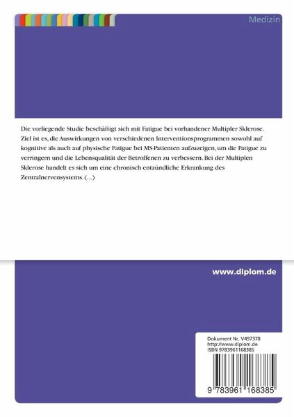 Die vorliegende Studie beschäftigt sich mit Fatigue bei vorhandener Multipler Sklerose. Ziel ist es, die Auswirkungen von verschiedenen Interventionsprogrammen sowohl auf kognitive als auch auf physische Fatigue bei MS-Patienten aufzuzeigen, um die Fatigue zu verringern und die Lebensqualität der Betroffenen zu verbessern. Bei der Multiplen Sklerose handelt es sich um eine chronisch entzündliche Erkrankung des Zentralnervensystems. Der Ausbruch der Erkrankung beginnt hauptsächlich zwischen dem zwanzigsten und vierzigsten Lebensjahr und zeigt sich in der Einschränkung bestimmter Interessen bezüglich Familie und Beruf. Obwohl Fatigue eines der auffälligsten Symptome bei MS ist, existieren im Vergleich zu anderen Symptomen nur wenige Assessmentmethoden und zu wenige Behandlungsmethoden. Deshalb können Veränderungen, die durch Fatigue bedingt sind, das Leben der Patienten sehr negativ beeinflussen.