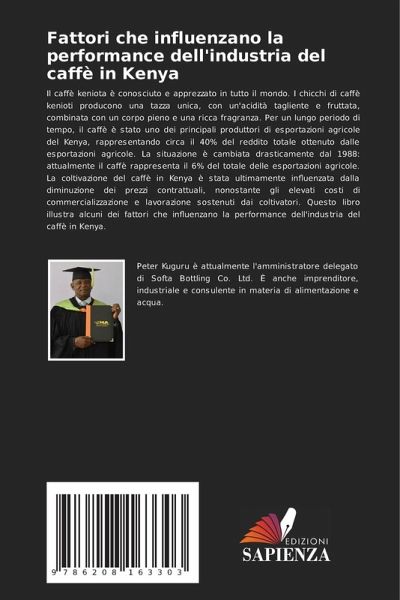 Il caffè keniota è conosciuto e apprezzato in tutto il mondo. I chicchi di caffè kenioti producono una tazza unica, con un'acidità tagliente e fruttata, combinata con un corpo pieno e una ricca fragranza. Per un lungo periodo di tempo, il caffè è stato uno dei principali produttori di esportazioni agricole del Kenya, rappresentando circa il 40% del reddito totale ottenuto dalle esportazioni agricole. La situazione è cambiata drasticamente dal 1988: attualmente il caffè rappresenta il 6% del totale delle esportazioni agricole. La coltivazione del caffè in Kenya è stata ultimamente influenzata dalla diminuzione dei prezzi contrattuali, nonostante gli elevati costi di commercializzazione e lavorazione sostenuti dai coltivatori. Questo libro illustra alcuni dei fattori che influenzano la performance dell'industria del caffè in Kenya.