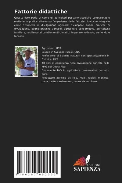Questo libro parla di come gli agricoltori possano acquisire conoscenze e metterle in pratica attraverso l'esperienza delle fattorie didattiche integrate come strumenti di divulgazione agricola; sviluppare buone pratiche di divulgazione, buone pratiche agricole, agricoltura conservativa, agricoltura familiare, resilienza ai cambiamenti climatici; imparare vedendo, sentendo e facendo.