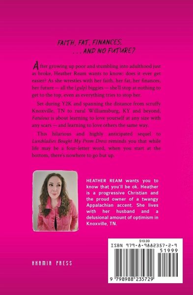 After growing up poor and stumbling into adulthood just as broke, Heather Ream wants to know: does it ever get easier? As she wrestles with her faith, her fat, her finances, her future - all the (gulp) biggies - she'll stop at nothing to get to the top, even as everything tries to stop her. Set during Y2K and spanning the distance from scruffy Knoxville, TN to rural Williamsburg, KY and beyond, Fatulous is about learning to love yourself at any size with any scars - and learning to love others the same way. This hilarious and highly anticipated sequel to Lunchladies Bought My Prom Dress reminds you that while life may be a four-letter word, when you start at the bottom, there's nowhere to go but up.