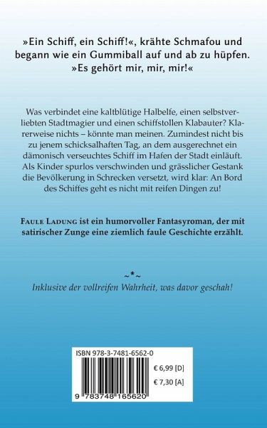 Was verbindet eine kaltblütige Halbelfe, einen selbstverliebten Stadtmagier und einen schiffstollen Klabauter? Klarerweise nichts - könnte man meinen. Zumindest nicht bis zu jenem schicksalhaften Tag, an dem ausgerechnet ein dämonisch verseuchtes Schiff im Hafen der Stadt einläuft. Als Kinder spurlos verschwinden und grässlicher Gestank die Bevölkerung in Schrecken versetzt, wird klar: An Bord des Schiffes geht es nicht mit reifen Dingen zu!FAULE LADUNG ist ein humorvoller Fantasyroman, der mit satirischer Zunge eine ziemlich faule Geschichte erzählt.# Inklusive der vollreifen Wahrheit, was davor geschah! #