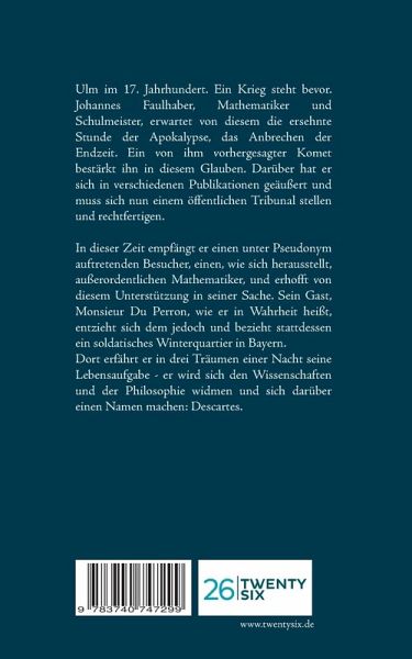 Ulm im 17. Jahrhundert. Ein Krieg steht bevor. Johannes Faulhaber, Mathematiker und Schulmeister, erwartet von diesem die ersehnte Stunde der Apokalypse, das Anbrechen der Endzeit. Ein von ihm vorhergesagter Komet bestärkt ihn in diesem Glauben. Darüber hat er sich in verschiedenen Publikationen geäußert und muss sich nun einem öffentlichen Tribunal stellen und rechtfertigen. In dieser Zeit empfängt er einen unter Pseudonym auftretenden Besucher, einen, wie sich herausstellt, außerordentlichen Mathematiker, und erhofft von diesem Unterstützung in seiner Sache. Sein Gast, Monsieur Du Perron, wie er in Wahrheit heißt, entzieht sich dem jedoch und bezieht stattdessen ein soldatisches Winterquartier in Bayern. Dort erfährt er in drei Träumen einer Nacht seine Lebensaufgabe - er wird sich den Wissenschaften und der Philosophie widmen und sich darüber einen Namen machen: Descartes.