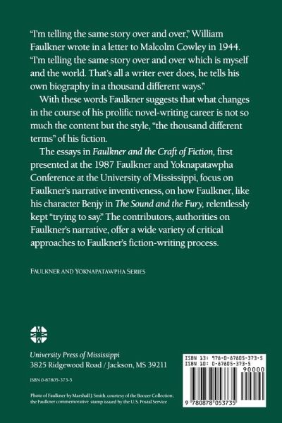 In 1944, William Faulkner wrote to Malcolm Cowley, ¿I¿m telling the same story over and over which is myself and the world. That¿s all a writer ever does, he tells his own biography in a thousand different terms.¿ With these words, Faulkner suggests that what changes in the course of his prolific novel-writing career is not so much the content but the style, ¿the thousand different terms¿ of his fiction. The essays in Faulkner and the Craft of Fiction, first presented at the 1987 Faulkner and Yoknapatawpha Conference at the University of Mississippi, focus on Faulkner¿s narrative inventiveness, on how Faulkner, like his character Benjy in The Sound and the Fury, relentlessly kept ¿trying to say.¿ The contributors, authorities on Faulkner¿s narrative, offer a wide variety of critical approaches to Faulkner¿s fiction-writing process. Cleanth Brooks, for example, applies the strategies of New Criticism to Faulkner¿s rendering of the heroic and pastoral modes; Judith L. S