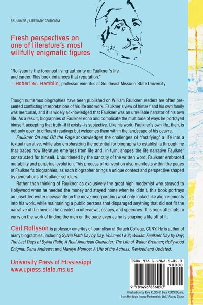 Though numerous biographies have been published on William Faulkner, readers are often presented conflicting interpretations of his life and work. Faulkner's view of himself and his own family was mercurial, and it is widely acknowledged that Faulkner was an unreliable narrator of his own life. As a result, biographies of Faulkner echo and complicate the multitude of ways he portrayed himself, accepting that truth--if it exists--is subjective. Like his work, Faulkner's own life, then, is not only open to different readings but welcomes them within the landscape of his oeuvre. Faulkner On and Off the Page acknowledges the challenges of "factifying" a life into a textual narrative, while also emphasizing the potential for biography to establish a throughline that traces how literature emerges from life and, in turn, shapes the life narrative Faulkner constructed for himself. Unburdened by the sanctity of the written word, Faulkner embraced mutability and perpetual evolution. This process of reinvention also manifests within the pages of Faulkner's biographies, as each biographer brings a unique context and perspective shaped by generations of Faulkner scholars. Rather than thinking of Faulkner as exclusively the great high modernist who strayed to Hollywood when he needed the money and stayed home when he didn't, this book portrays an unsettled writer incessantly on the move incorporating what only looked like alien elements into his work, while maintaining a public persona that disparaged anything that did not fit the narrative of the novelist he created in interviews, essays, and speeches. This book attempts to carry on the work of finding the man on the page even as he is shaping a life off of it.