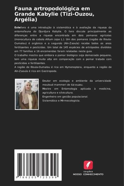 Estelivro é uma introdução à sistemática e à avaliação da riqueza da entomofauna do Djurdjura Kabylia. O livro discute principalmente as diferenças entre a riqueza encontrada em dois pomares agrícolas (monocultura de cebola Allium cepa L.). Um dos pomares (região de Illoula-Oumalou) é orgânico e o segundo (Aïn-Zaouïa) recebe todos os anos fertilizantes e pesticidas. Um total de 145 espécies de artrópodes divididos em 77 famílias e 16 encomendas foram relatadas neste guia. O trabalho mostra que embora o pomar biológico seja demasiado pequeno, tem uma riqueza muito alta em comparação com o pomar tratado com pesticidas e fertilizantes. A região de Illoula-Oumalou é rica em Hymenoptera, enquanto a região de Aïn-Zaouïa é rica em Gastropoda.