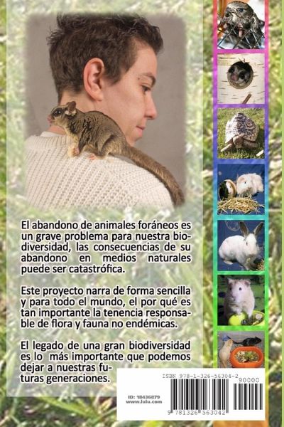 El abandono de animales foráneos es un grave problema para nuestra biodiversidad, las consecuencias de su abandono en medios naturales puede ser catastrófica. Este proyecto narra de forma sencilla y para todo el mundo, el por qué es tan importante la tenencia responsable de flora y fauna no endémicas. El legado de una gran biodiversidad es lo más importante que podemos dejar a nuestras futuras generaciones. Interior en blanco y negro.