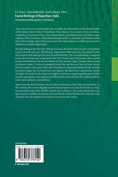 "The compendium is a valuable contribution of lasting value to the ecology of Rajasthan despite its primary focus on vertebrate fauna. ... the book will be enjoyed by zoologists, ecologists, conservationists, wildlife managers, and by many people from outside the State of Rajasthan who will gain useful insights into its natural heritage." (Brij Gopal, International Journal of Ecology and Environmental Sciences, Vol. 41 (1-2), 2015)
