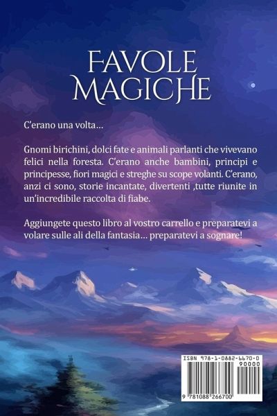 C'erano una volta... Gnomi birichini, dolci fate e animali parlanti che vivevano felici nella foresta. C'erano anche bambini, principi e principesse, fiori magici e streghe su scope volanti. C'erano, anzi ci sono, storie incantate, divertenti ,tutte riunite in un'incredibile raccolta di fiabe. Aggiungete questo libro al vostro carrello e preparatevi a volare sulle ali della fantasia... preparatevi a sognare!
