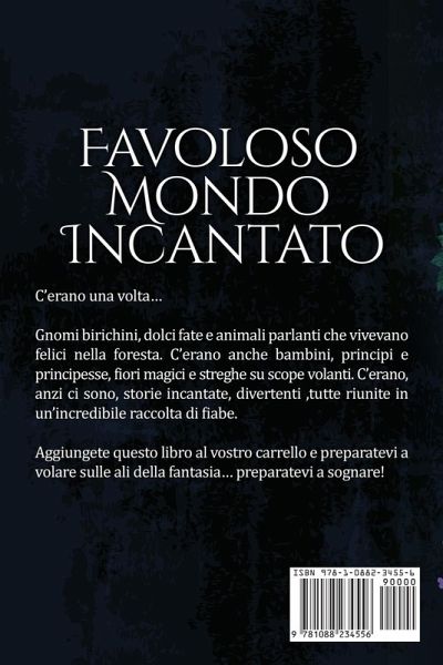 C'erano una volta... Gnomi birichini, dolci fate e animali parlanti che vivevano felici nella foresta. C'erano anche bambini, principi e principesse, fiori magici e streghe su scope volanti. C'erano, anzi ci sono, storie incantate, divertenti ,tutte riunite in un'incredibile raccolta di fiabe. Aggiungete questo libro al vostro carrello e preparatevi a volare sulle ali della fantasia... preparatevi a sognare!