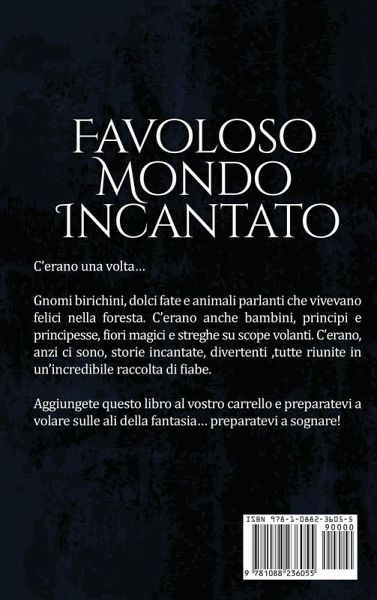 C'erano una volta... Gnomi birichini, dolci fate e animali parlanti che vivevano felici nella foresta. C'erano anche bambini, principi e principesse, fiori magici e streghe su scope volanti. C'erano, anzi ci sono, storie incantate, divertenti ,tutte riunite in un'incredibile raccolta di fiabe. Aggiungete questo libro al vostro carrello e preparatevi a volare sulle ali della fantasia... preparatevi a sognare!