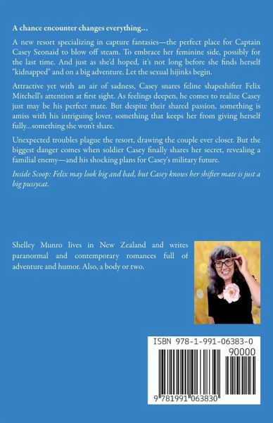 A chance encounter changes everything... A new resort specializing in capture fantasies-the perfect place for Captain Casey Seonaid to blow off steam. To embrace her feminine side, possibly for the last time. And just as she'd hoped, it's not long before she finds herself "kidnapped" and on a big adventure. Let the sexual hijinks begin. Attractive yet with an air of sadness, Casey snares feline shapeshifter Felix Mitchell's attention at first sight. As feelings deepen, he comes to realize Casey just may be his perfect mate. But despite their shared passion, something is amiss with his intriguing lover, something that keeps her from giving herself fully...something she won't share. Unexpected troubles plague the resort, drawing the couple ever closer. But the biggest danger comes when soldier Casey finally shares her secret, revealing a familial enemy-and his shocking plans for Casey's military future. Inside Scoop: Felix may look big and bad, but Casey knows her shifter mate is just a big pussycat.