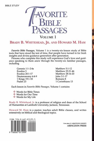 Refreshing insights into popular, well-loved Scripture. Each lesson offers a biblical basis for facing life's decisions and encourages a deeper personal faith. Contains 26 scripture passages for study that may be studied in any order. Appropriate for use in groups or for individual study. Volumes may be studied in any order. In this volume 12 Old Testament passages and 14 New Testament passages will be studied. Each lesson has approximately three pages of reading that can be completed during a personal devotional time. For a complete listing of scriptures click the Leader's Guide below. separate Leader's Guide 9780687071890