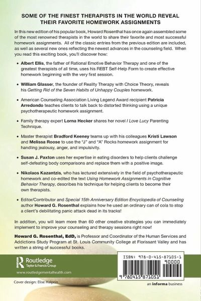This companion to Favorite Counseling and Therapy Techniques contains more than fifty handouts and homework assignments used by some of the finest and most renowned therapists in the world, such as Albert Ellis, William Glasser, Richard B. Bolles, Allen E. Ivey, Marianne Schneider Corey, Gerald Corey, Maxie C. Maultsby, Jr., and Peter R. Breggin. Several new entries have been added to reflect the newest advancements in the counseling field. This is sure to be a highly useful and insightful read for any practitioner wishing to learn new techniques to benefit their practice and patients.