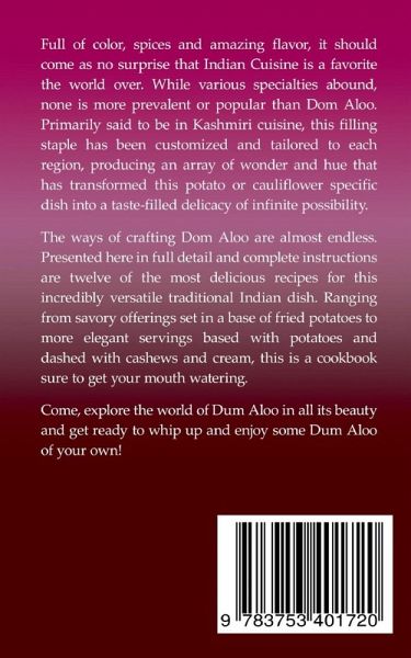Full of color, spices and amazing flavor, it should come as no surprise that Indian Cuisine is a favorite the world over. While various specialties abound, none is more prevalent or popular than Dom Aloo. Primarily said to be in Kashmiri cuisine, this filling staple has been customized and tailored to each region, producing an array of wonder and hue that has transformed this potato or cauliflower specific dish into a taste-filled delicacy of infinite possibility.The ways of crafting Dom Aloo are almost endless. Presented here in full detail and complete instructions are twelve of the most delicious recipes for this incredibly versatile traditional Indian dish. Ranging from savory offerings set in a base of fried potatoes to more elegant servings based with potatoes and dashed with cashews and cream, this is a cookbook sure to get your mouth watering. Come, explore the world of Dum Aloo in all its beauty and get ready to whip up and enjoy some Dum Aloo of your own!
