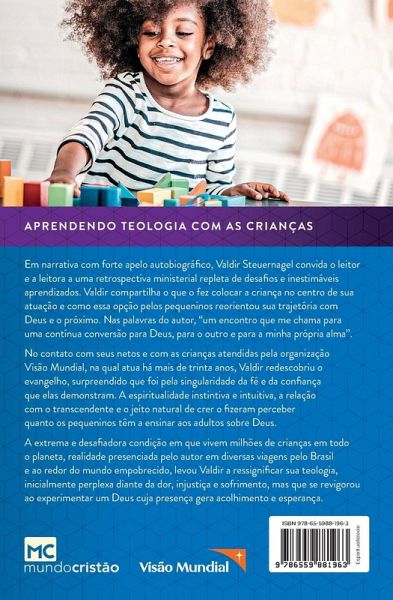Aprendendo teologia com as crianças Em narrativa com forte apelo autobiográfico, Valdir Steuernagel convida o leitor e a leitora a uma retrospectiva ministerial repleta de desafios e inestimáveis aprendizados. Valdir compartilha o que o fez colocar a criança no centro de sua atuação e como essa opção pelos pequeninos reorientou sua trajetória com Deus e o próximo. Nas palavras do autor, "um encontro que me chama para uma contínua conversão para Deus, para o outro e para a minha própria alma". No contato com seus netos e com as crianças atendidas pela organização Visão Mundial, na qual atua há mais de trinta anos, Valdir redescobriu o evangelho, surpreendido que foi pela singularidade da fé e da confiança que elas demonstram. A espiritualidade instintiva e intuitiva, a relação com o transcendente e o jeito natural de crer o fizeram perceber quanto os pequeninos têm a ensinar aos adultos sobre Deus. A extrema e desafiadora condição em que vivem milhões de crianças em todo o planeta, realidade presenciada pelo autor em diversas viagens pelo Brasil e ao redor do mundo empobrecido, levou Valdir a ressignificar sua teologia, inicialmente perplexa diante da dor, injustiça e sofrimento, mas que se revigorou ao experimentar um Deus cuja presença gera acolhimento e esperança.