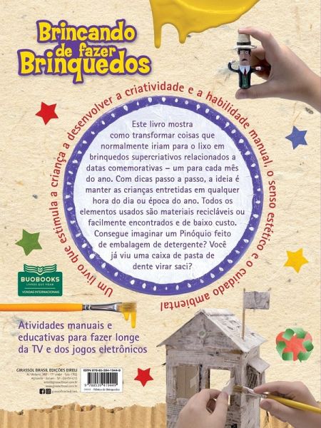 Este livro mostra como transformar coisas que normalmente iriam para o lixo em brinquedos supercriativos relacionados a datas comemorativas ¿ um para cada mês do ano. Com dicas passo a passo, a ideia é manter as crianças entretidas em qualquer hora do dia ou época do ano. Todos os elementos usados são materiais facilmente encontrados e de baixo custo. Consegue imaginar um Pinóquio feito de embalagem de detergente? Você já viu uma caixa de pasta de dente virar saci? Um livro especial que estimula a criança a desenvolver a criatividade e a habilidade manual, o senso estético e o cuidado ambiental! Perfeito para momentos em família e para atividades de recreação.