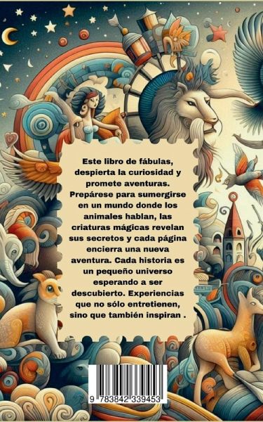 ¡Bienvenido al mágico mundo de las fábulas y las fantasías...! Este libro se trata de una colección única de fábulas e historias que no solo entretienen, sino que también transmiten una profunda sabiduría. Cada historia termina con una moraleja clara que invita a la reflexión y ofrece valiosas enseñanzas vitales. ¿Qué emociones desencadena? Las fábulas y las historias de este libro evocan una amplia gama de emociones, desde pro-funda alegría y risa hasta conmovedora reflexión. Las historias están diseñadas para atraer a lectores jóvenes y adultos; cautivarlos y darles una sensación de asombro y descubrimiento. ¿Qué impacto tiene la historia en los lectores? Estas historias tienen el potencial de cambiar el punto de vista de los lectores. Promueven la comprensión de los valores morales, te alientan a pensar en tus propias acciones y te inspiran a ver el mundo con otros ojos. Despierta la curiosidad y promete aventuras. Prepárate para sumergirte en un mundo donde los animales hablan, las cria-turas mágicas revelan sus secretos y cada página encierra una nueva aventura. Cada historia es un pequeño universo esperando a ser descubierto. Espere una experiencia que no sólo entretenga, sino que también inspire y enseñe. Emociones y citas. Experimente historias llenas de corazón y alma. Inspírate con citas como - La imaginación es más importante que el conocimiento-: Albert Einstein, y siente la magia que late en cada página de este libro. Y sí, al final de cada historia puedes esperar un final feliz que te hará sonreír y llenará tu corazón de calidez. Sumérgete en el mundo de las fábulas y cuentos morales y déjate encantar. Este libro promete no sólo entretenimiento sino también introducirse en un viaje inolvidable lleno de sabiduría, moral y maravillas.