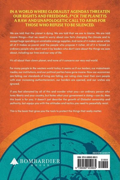 In a world where globalist agendas threaten our rights and freedoms, F*ck the Planet is a raw and unapologetic call to arms for those who refuse to be silenced. We are told that the planet is dying. We are told that we are to blame. We are told insane things-that we need to worry about cow farts changing the climate and to accept huge spending on unreliable energy supplies. And none of it makes sense while all of it makes us poorer and the people who propose it richer. All of it is forced on ordinary people who don't want it by leaders who don't care about the things we care about, including our lives and our way of life. It's all about their clown planet, and none of it concerns our very real world. For many people in the western world today, it seems as if our leaders, our mainstream media, our institutions, and our political parties have gone insane. Now our economies are failing, our standards of living are falling, our ruling class treat their own people with ever increasing authoritarianism, our borders are opened, and our wishes are ignored. If you feel alienated by all of this and wonder what you-an ordinary person who loves liberty and your country, but hates what your government is doing-can do, then this book is for you. It doesn't just describe the growth of Globalist censorship and authority, but equips you with the attitudes and tactics you need to peacefully resist. This is the book that gives you the tools to protect the things that really matter.