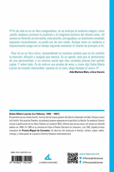 "Fe de vida no es un libro vanguardista, no se anticipa al realismo mágico, como Jardín; tampoco contiene la erudición y el magistral dominio del idioma como Un verano en Tenerife; es otro estilo, más sencillo, sin regodeos, un testimonio novelado expuesto visceralmente, no podía ser de otro modo. Aunque tiene un moderno e impresionante juego con el tiempo logrando mantener el interés de principio a fin. De él podía surgir la gran película cubana, el gran guión cinematográfico, hasta aseguro que la más profunda, sólida telenovela. Para mí es un libro único, trascendental en nuestros predios que no ha recibido la atención, difusión y acogida que merece. Digno del premio de la crítica, si se hace justicia. Es un aporte, más que al sentimiento de una personalidad, a un entorno social que muy contadas plumas han podido captar. Y sobre todo, Fe de vida es una prueba de amor y, como dijo Dulce María Loynaz en ocasión memorable,: puesta en el caso, elegí siempre el amor." Aldo Martínez Malo, escritor