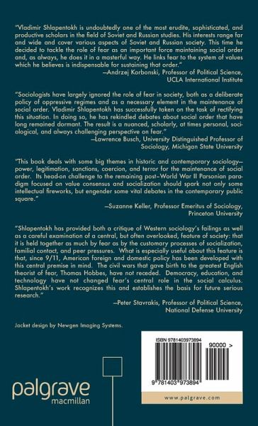"This book deals with some big themes in historic and contemporary sociology - power, legitimation, sanctions, coercion, and terror for the maintenance of social order. Its head-on challenge to the remaining post-World War II Parsonian paradigm focused on value consensus and socialization should spark not only some intellectual fireworks but engender some vital debates in the contemporary public square." - Suzanne Keller, Professor Emeritus of Sociology, Princeton University"Sociologists have largely ignored the role of fear in society, both as a deliberate policy of oppressive regimes and as a necessary element in the maintenance of social order. Shlapentokh has successfully taken on the task of rectifying this situation. In doing so, he has rekindled debates about social order that have long remained dormant. The result is a nuanced, scholarly, at times personal, sociological, and always challenging perspective on fear." - Lawrence Busch, University Distinguished Professor of Sociology, Michigan State University"Vladimir Shlapentokh is undoubtedly one of the most erudite, sophisticated and productive scholars in the field of Soviet and Russian studies. His interests range far and wide and cover various aspects of Soviet and Russian society. This time he decided to tackle the role of fear as an important force maintaining social order and, as always, he does it in a masterful way. He links fear to the system of values which he believes is indispensable for sustaining thatorder." - Andrzej Korbonski, Professor of Political Science, UCLA International Institute"Shlapentokh has provided both a critique of Western sociology's failings as well as a careful examination ofa central, but often overlooked, feature of society: that it is held together as much by fearas bythe customary processes of socialization, familial contact, and peer pressures. What is especially useful about thisfeature isthat, since 9/11, American foreign and domestic policyhas been developed with this central premise in mind. The civil wars that gave birth to the greatest English theorist of fear, Thomas Hobbes, have not receded. Democracy, education, and technology have not changed fear's central role in the social calculus. Shlapentokh's work recognizes this and establishes the basis for future serious research." - Peter Stavrakis, Professor of Political Science, National Defense University