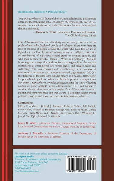 Fear of Persecution offers an absorbing and necessary overview of the plight of internally displaced people (IDPs) and refugees. James D. White and Anthony J. Marsella bring together essays that address issues emerging from the current relationship of international law, human rights, and refugee health and well-being.