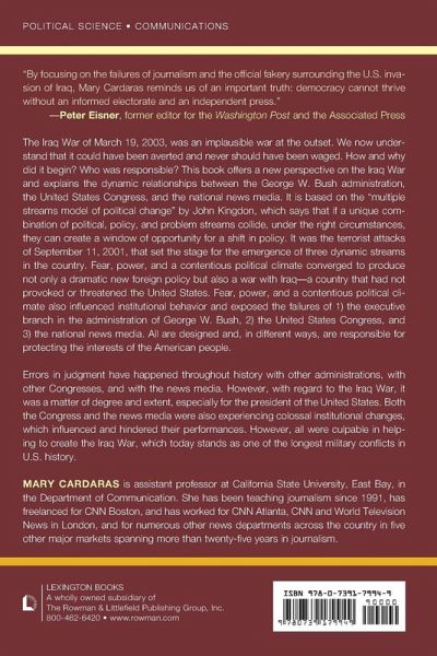 The Iraq War of March 19, 2003 was an implausible war at the outset. We now understand that it could have been averted and never should have been waged. How and why did it begin? Who was responsible? This book offers a new perspective on the Iraq War and explains the dynamic relationships between the George W. Bush administration, the United States Congress, and the national news media. It is based on the "multiple streams model of political change" by John Kingdon, which says that if a unique combination of political, policy, and problem streams collide, under the right circumstances, they can create a window of opportunity for a shift in policy. It was the terrorist attacks of September 11, 2001, which set the stage for the emergence of three dynamic streams in the country. Fear, power, and a contentious political climate converged to produce not only a dramatic new foreign policy, but also a war with Iraq, a country which had not provoked or threatened the United States. Fear, power, and a tense political climate also influenced institutional behavior and exposed the failures of 1) The executive branch in the administration of George W. Bush, 2) The United States Congress and, 3) the national news media. All are designed and are differently responsible to protect the interests of the American people. Errors in judgment have happened throughout history with other administrations, with other Congresses, and with the news media. However, with regard to the Iraq War, it was a matter of degree and extent, especially for the President of the United States. Both the Congress and the news media were also experiencing colossal institutional changes, which influenced and hindered their performances. However, all were culpable in helping to create the Iraq war, which today stands as one of the longest military conflicts in United States history.