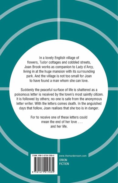 In a lovely English village of flowers, Tudor cottages and cobbled streets, Joan Brook works as companion to Lady d'Arcy, living in at the huge mansion with its surrounding park. And the village is not too small for Joan to have found a man whom she can love. Suddenly the peaceful surface of life is shattered as a poisonous letter is received by the town's most saintly citizen. It is followed by others; no one is safe from the anonymous letter writer. With the letters comes death. In the anguished days that follow, Joan realises that she too is in danger. For to receive one of these letters could mean the end of her love ... and her life.