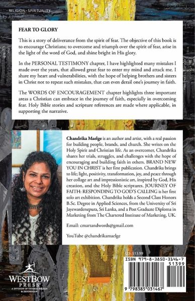 FEAR TO GLORY This is a story of deliverance from the spirit of fear. The objective of this book is to encourage Christians; to overcome and triumph over the spirit of fear, arise in the light of the word of God, and shine bright in His glory. In the PERSONAL TESTIMONY chapter, I have highlighted many mistakes I made over the years, that allowed great fear to enter my mind and attack me. I share my heart and vulnerabilities, with the hope of helping brothers and sisters in Christ not to repeat such mistakes, that can even derail one's journey in faith. The WORDS OF ENCOURAGEMENT chapter…mehr