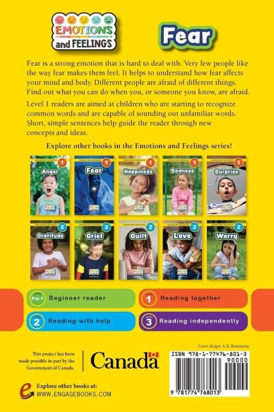 Fear is a strong emotion that is hard to deal with. Very few people like the way fear makes them feel. It helps to understand how fear affects your mind and body. Different people are afraid of different things. Find out what you can do when you, or someone you know, are afraid. Level 1 readers are aimed at children who are starting to recognize common words and are capable of sounding out unfamiliar words. Short, simple sentences help guide the reader through new concepts and ideas. ¿This project has been made possible in part by the Government of Canada.