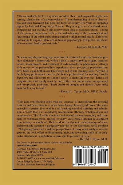 Using data from infant observation, and child, adolescent, and adult analyses, the Novicks explicate a multidimensional, developmental theory of sadomasochism that has been recognized as a major innovation. According to the Novicks, each phase of development contributes to the clinical manifestations of sadomasochism. Painful experiences in infancy are transformed into a mode of attachment, then into an embraced marker of specialness and unlimited destructive power, then into a conviction of equality with oedipal parents, and, finally, into an omnipotent capacity to gratify infantile wishes through the coercion of others. By school age, these children have established a magic omnipotent system of thought which undermines alternate means of competent interactions with reality.
