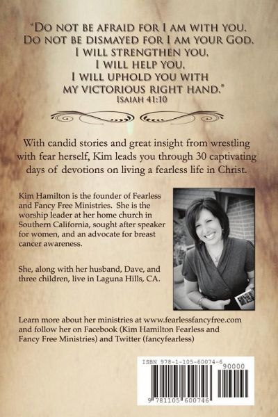 With candid stories and great insight from wrestling with fear herself, Kim leads you through 30 captivating days of devotions on living a fearless life in Christ. Each day begins with strength and focus from God's Word and ends with prayer and time for personal reflection and commitment.