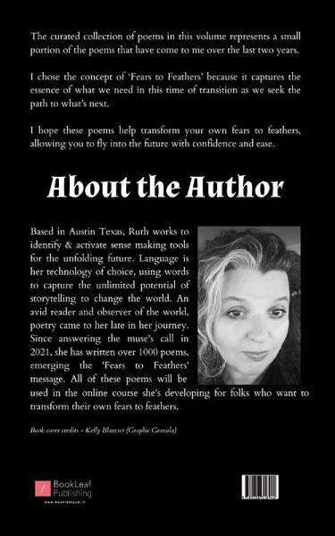 ""The curated collection of poems in this volume represents a small portion of the poems that have come to me over the last two years. I chose the concept of 'Fears to Feathers' because it captures the essence of what we need in this time of transition as we seek the path to what's next. I hope these poems help transform your own fears to feathers, allowing you to fly into the future with confidence and ease.""