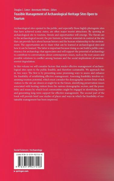 Introduction: Feasibility as the Cornerstone of Effective Management of Public Archaeological Sites.- Chapter 1 - Cultural Value and Sustainable Development: A framework for assessing the tourism potential of heritage places.- Chapter 2 - Managing Herculaneum in context: measuring benefits for people and places.- Chapter 3 - Vikings and World Heritage - Towards New Strategic Synergies?.- Chapter 4 - The Tyranny of Materiality - Sacred Landscapes, Tourism and Community Narratives.- Chapter 5 - Sustainable archaeological tourism through standards for good practice.- Chapter 6 - Archaeotourism, Archaeological Site Preservation, and Local Communities.- Chapter 7 - The Curse of the Betrothed: Evaluating the Relationship between Archaeology and Tourism in Croatia AD 2017.- Chapter 8 - Archaeology and tourism in Ireland: bridging two cultures.- Chapter 9 - Archaeologist for a week - Voluntourism in Archaeology.- Chapter 10 - Archaeotourism Spaces in Present-day Poland: Thoughts on Reconstruction and Re-enactments.- Chapter 11 - The European Route of Megalithic Culture - Pathways to Europe's earliest stone architecture.- Chapter 12 - Westphalian Megaliths go touristic: Archaeological research as a base for development of tourism.- Chapter 13 - Archaeology and Tourism - Problems and Possibilities: An Example from West Sweden.- Chapter 14 - The eScape Project: Combining Archaeology and Art to Merge the Past with the Present.- Conclusion - Feasibility Assessment at Public Archaeological Heritage Sites.
