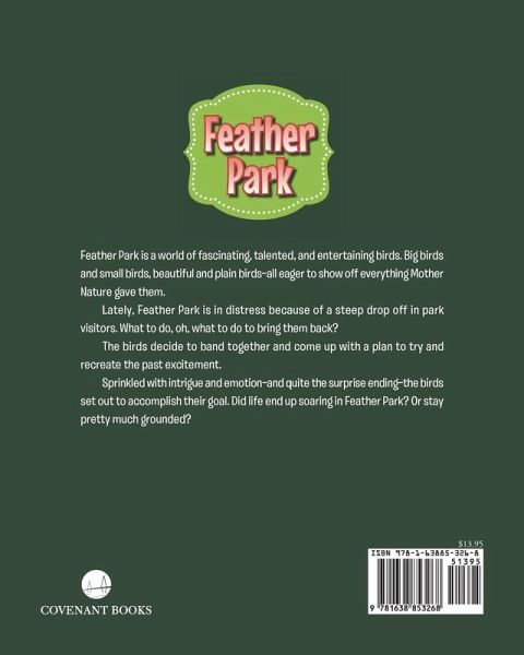 Feather Park is a world of fascinating, talented, and entertaining birds. Big birds and small birds, beautiful and plain birds-all eager to show off everything Mother Nature gave them.Lately, Feather Park is in distress because of a steep drop off in park visitors. What to do, oh, what to do to bring them back?The birds decide to band together and come up with a plan to try and recreate the past excitement.Sprinkled with intrigue and emotion-and quite the surprise ending-the birds set out to accomplish their goal. Did life end up soaring in Feather Park? Or stay pretty much grounded?