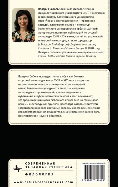 The destructive power of obsessive love was a defining subject of eighteenth- and nineteenth-century Russian literature. In Febris Erotica, Sobol argues that Russian writers were deeply preoccupied with the nature of romantic relationships and were persistent in their use of lovesickness not simply as a traditional theme but as a way to address pressing philosophical, ethical, and ideological concerns through a recognizable literary trope. Sobol examines stereotypes about the damaging effects of romantic love and offers a short history of the topos of lovesickness in Western literature and medicine.