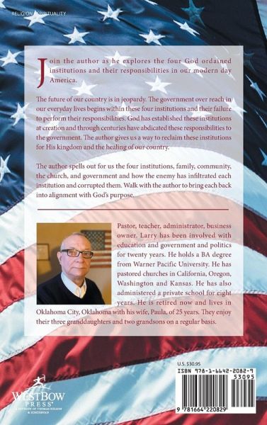 Join the author as he explores the four God ordained institutions and their responsibilities in our modern day America. The future of our country is in jeopardy. The government over reach in our everyday lives begins within these four institutions and their failure to perform their responsibilities. God has established these institutions at creation and through centuries have abdicated these responsibilities to the government. The author gives us a way to reclaim these institutions for His kingdom and the healing of our country. The author spells out for us the four institutions, family, community, the church, and government and how the enemy has infiltrated each institution and corrupted them. Walk with the author to bring each back into alignment with God's purpose.