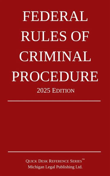 A concise and comprehensive edition of the Federal Rules of Criminal Procedure for quick reference. Updated through January 1, 2025. Perfect for your briefcase or desk and a great format for the attorney or law school student who simply needs to refer to the rules. A perfect supplement for any casebook. Contents:Title I - Applicability Title II - Preliminary Proceedings Title III - The Grand Jury, the Indictment, and the Information Title IV - The Arraignment and Preparation for Trial Title V - Venue Title VI - Trial Title VII - Post-Conviction Procedures Title VIII - Supplementary and Special Proceedings Title IX - General Provisions