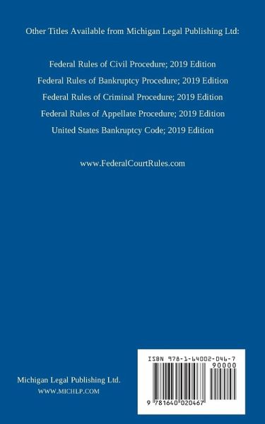 A handy pocket version of the Federal Rules of Evidence (5" x 8"), as amended through January 1, 2019. A Perfect quick reference for your desk or briefcase, for both attorneys and law school students. Includes internal rules cross-references for ease of use. Perfect as a supplement for any casebook. Contents: Article 1; General Provisions Article 2; Judicial Notice Article 3; Presumptions in Civil Cases Article 4; Relevance and its Limits Article 5; Privileges Article 6; Witnesses Article 7; Opinions and Expert Testimony Article 8; Hearsay Article 9; Authentication and Identification Article 10; Contents of Writings, Recordings, and Photographs Article 11; Miscellaneous Rules