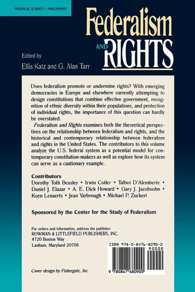 The authors of this engaging book discuss whether federalism promotes or undermines rights. With emerging democracies in Europe and elsewhere currently attempting to design constitutions that combine effective government, recognition of ethnic diversity within their populations, and protection of individual rights, the importance of these questions cannot be overstated. The authors examine both the theoretical perspectives on the relationship between federalism and rights, and the historical and contemporary relationship between federalism and rights in the United States. The contributors to this volume analyze the U.S. federal system as a potential model for contemporary constitution-makers as well as explore how its system can serve as a cautionary example. Sponsored by the Center for the Study of Federalism. Contributors include: Dorthy Toth Beasley; Irwin Cotler; Talbolt Dölemberte; Daniel J. Elazar; A.E. Dick Howard; Gary J. Jacobsohn; Koen Lenaerts; Jean Yarborough; Michael P. Zuckert.