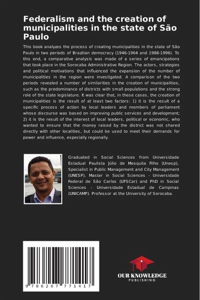 This book analyzes the process of creating municipalities in the state of São Paulo in two periods of Brazilian democracy (1946-1964 and 1988-1996). To this end, a comparative analysis was made of a series of emancipations that took place in the Sorocaba Administrative Region. The actors, strategies and political motivations that influenced the expansion of the number of municipalities in the region were investigated. A comparison of the two periods revealed a number of similarities in the creation of municipalities, such as the predominance of districts with small populations and the strong role of the state legislature. It was clear that, in these cases, the creation of municipalities is the result of at least two factors: 1) it is the result of a specific process of action by local leaders and members of parliament whose discourse was based on improving public services and development; 2) it is the result of the interest of local leaders, political or economic, who wanted to ensure that the money raised by the district was not shared directly with other localities, but could be used to meet their demands for power and influence, especially regionally.
