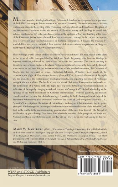 More than any other theological tradition, Reformed federalism has recognized the importance of the biblical teaching on the covenants in its system of doctrine. This tradition came to mature confessional status in the writing of the Westminster Confession of Faith (and Catechisms). The place of the Westminster tradition within the stream of Christian history and theology is remarkable indeed. Westminster not only gained recognition as the epitome of Calvinist teaching at the close of the Protestant Reformation (the middle of the seventeenth century), it also earned the reputation for precision and comprehensiveness in doctrinal formulation. It became the measure by which biblical interpreters defended their systems of doctrine - either in agreement or disagreement with the theology of the Westminster divines. These writings are the climax of three decades of research and study, and they appear as the third in the series of collections published by Wipf and Stock, beginning with Covenant Theology in Reformed Perspective, followed by Gospel Grace: The Modern-day Controversy. The critical teaching in dispute in each of these studies is the classic Protestant antithesis between the Law and the Gospel, what serves as the basis for the Reformed doctrine of the twofold covenants, the Covenant of Works and the Covenant of Grace. Protestant-Reformed Orthodoxy now stands at the crossroads; the plight of Westminster Seminary (East and West) is merely illustrative of the depth and the intensity of the contemporary theological dispute, one impacting the future of Protestant evangelicalism as a whole. The battle is between historic Reformed-Protestantism and modern-day revisionism of a radical sort. The rapid rise of postmodernism (or nonfoundationalism) is indicative of the rapidly changing mood and posture in (""evangelical"") biblical scholarship at the opening of this third millennium of Christian interpretation. Without question, the modern church continues to loose her biblical moorings. Forsaking the basic theological convictions of the Protestant Reformation it has attempted to subject the Word of God to vigorous academic (i.e., ""scientific"") investigation (the return of rationalism). In doing so, it has abandoned the Scripture principle, which recognizes the uniquely authoritative and inerrant character of the Word of God. Lost in the shuffle is the uncompromising proclamation of the one, true Gospel - the Gospel of justification by grace through faith alone. Lost also is the doctrine of the perspicuity of Scripture. Nothing less than a new Reformation in our day will halt travel down the road leading to destruction. --From the Preface