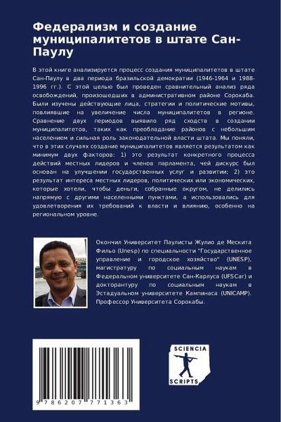 V ätoj knige analiziruetsq process sozdaniq municipalitetow w shtate San-Paulu w dwa perioda brazil'skoj demokratii (1946-1964 i 1988-1996 gg.). S ätoj cel'ü byl proweden srawnitel'nyj analiz rqda oswobozhdenij, proizoshedshih w administratiwnom rajone Sorokaba. Byli izucheny dejstwuüschie lica, strategii i politicheskie motiwy, powliqwshie na uwelichenie chisla municipalitetow w regione. Srawnenie dwuh periodow wyqwilo rqd shodstw w sozdanii municipalitetow, takih kak preobladanie rajonow s nebol'shim naseleniem i sil'naq rol' zakonodatel'noj wlasti shtata. My ponqli, chto w ätih sluchaqh sozdanie municipalitetow qwlqetsq rezul'tatom kak minimum dwuh faktorow: 1) äto rezul'tat konkretnogo processa dejstwij mestnyh liderow i chlenow parlamenta, chej diskurs byl osnowan na uluchshenii gosudarstwennyh uslug i razwitii; 2) äto rezul'tat interesa mestnyh liderow, politicheskih ili äkonomicheskih, kotorye hoteli, chtoby den'gi, sobrannye okrugom, ne delilis' naprqmuü s drugimi naselennymi punktami, a ispol'zowalis' dlq udowletworeniq ih trebowanij k wlasti i wliqniü, osobenno na regional'nom urowne.