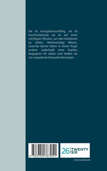 Sie ist navigationsunfähig, sie ist hochfunktional, sie ist auf einer wichtigen Mission, um den Kontinent zu retten. Merkwürdige Wesen, manche davon leben in ihrem Kopf, andere außerhalb ihres Kopfes, begegnen ihr dabei und stellen sie vor ungeahnte Herausforderungen.