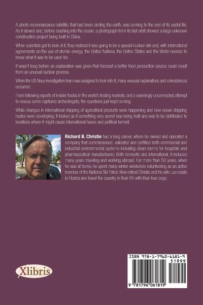 A photo reconnaissance satellite, that had been circling the earth, was coming to the end of its useful life. As it slowed and, before crashing into the ocean, a photograph from its last orbit showed a large unknown construction project being built in China. When scientists got to look at it, they realized it was going to be a special nuclear site and, with international agreements on the use of atomic energy, the United Nations, the United States and the World needed to know what it was to be used for. It wasn't long before an explanation was given that forecast a better food production source could result from an unusual nuclear process. When the US Navy investigation team was assigned to look into it, many unusual explanations and coincidences occurred. From following reports of insider trades in the world's trading markets, and a seemingly unconnected attempt to rescue some captured archeologists, the questions just kept coming. While changes in international shipping of agricultural products were happening and new ocean shipping routes were developing; it looked as if something very secret was being built and was to be distributed to locations where it might cause international havoc and political turmoil.