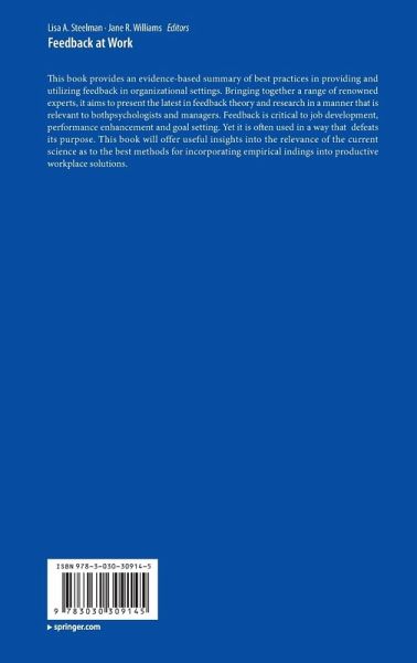 This book delivers an evidence-based summary of best practices in providing and utilizing feedback in organizational settings. Bringing together a range of renowned experts, the chapters in this book discuss the current state of feedback theory and research, as well as practical recommendations for using the evidence to improve feedback processes in organizations. This book is intended for scholars and managers, but anyone on the giving or receiving end of feedback will benefit from a better understanding of the process. The chapters in this volume take the reader deep into the current literature, set a research agenda for the future, and provide key take-aways to enhance intentionality in the feedback process.