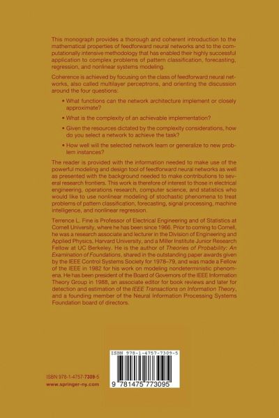 "...Fine must be congratulated for a coherent presentation of carefully selected material. Given the diversity of the field, this represented a serious challenge. Again, Feeforward Neural Network Methodlogy is an excellent reference for whoever wants to be brought to the frontier of research. I enthusiastically recommend it."