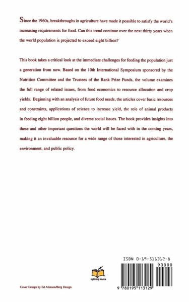 Since the 1960s the steadily increasing availability of food, arising from the application of new agricultural science, has exceeded the demands created by the growth in size of the human population of the world. However, the 1990 world population of 5.5 billion is projected to grow to 10 billion by 2050. Can the future demand for food be satisfied? This question is particularly difficult given that even in 1990 1.1 billion people in developing countries were living in poverty and more than 500 million in extreme poverty. This book, based on the proceedings of the 10th International Symposium sponsored by the Nutrition Committee and the Trustees of the Rank Prize Funds, in 1996, addresses the question of how to feed the projected population a generation from now and discusses the challenges this presents. The topics covered include land and crop nutrients and sustainability, natural resource management, water usage, applications of science to increase yield, the role of animal products in feeding people, and social aspects such as introducing new technology and the processes through which greater food security may be attained. The contributors are world authorities in their fields, and the book will benefit a wide range of professional workers in the agricultural sciences and in government agencies.