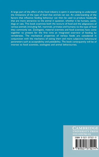 A large part of the effort of the food industry is spent in attempting to understand the limitations of the type of food that animals can eat. An understanding of the factors that influence feeding behaviour can then be used to produce foodstuffs that are more attractive to the animal in question, whether it be man, cattle, dogs or cats. This book examines both the texture of food and the adaptations of various animals (including fish, mammals, primates and man) to the type of food they commonly eat. Zoologists, material scientists and food scientists have got together to present for the first time an integrated overview of feeding by vertebrates. The mechanical properties of various foods are considered in conjunction with the mechanics of eating them and more subjective behavioural parameters such as acceptability and palatability. The book consequently will be of interest to food scientists, zoologists and animal behaviouralists.