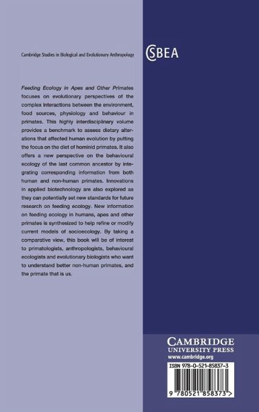 Feeding Ecology in Apes and Other Primates focuses on evolutionary perspectives of the complex interactions between the environment, food sources, physiology and behaviour in primates. This highly interdisciplinary volume provides a benchmark to assess dietary alterations that affected human evolution by putting the focus on the diet of hominid primates. It also offers a fresh perspective on the behavioural ecology of the last common ancestor by integrating corresponding information from both human and non-human primates. The potential of innovations of applied biotechnology are also explored to set new standards for future research on feeding ecology, and new information on feeding ecology in humans, apes and other primates is synthesized to help refine or modify current models of socioecology. By taking a comparative view, this book will be interesting to primatologists, anthropologists, behavioural ecologists and evolutionary biologists who want to understand better non-human primates, and the primate that is us.