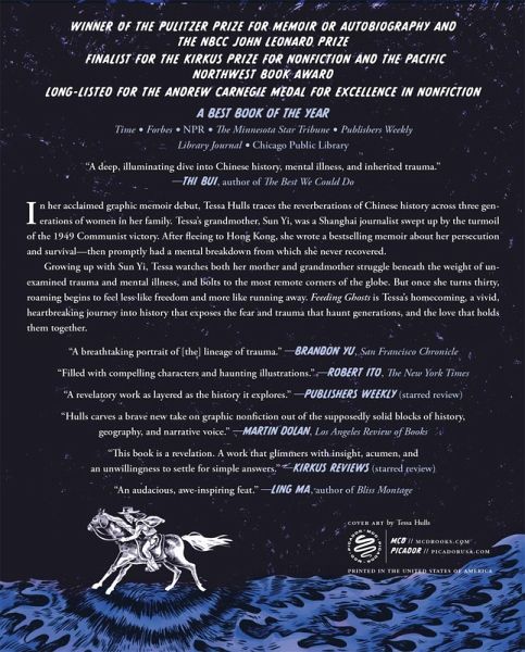 "Both epic and intimate, Tessa Hulls' Feeding Ghosts is a breathing testament to the power of discovery through art, not just of the self but of family, language, and history. In unearthing the ghosts of Mao's devastating impact on the psyches of her mother and grandmother, we witness Hulls come to terms with her own demons through indelible words and images that demonstrate the unique power of the graphic novel form. Feeding Ghosts is sure to inspire many of us to examine our own pasts, and the generations of lives that formed our beings."
